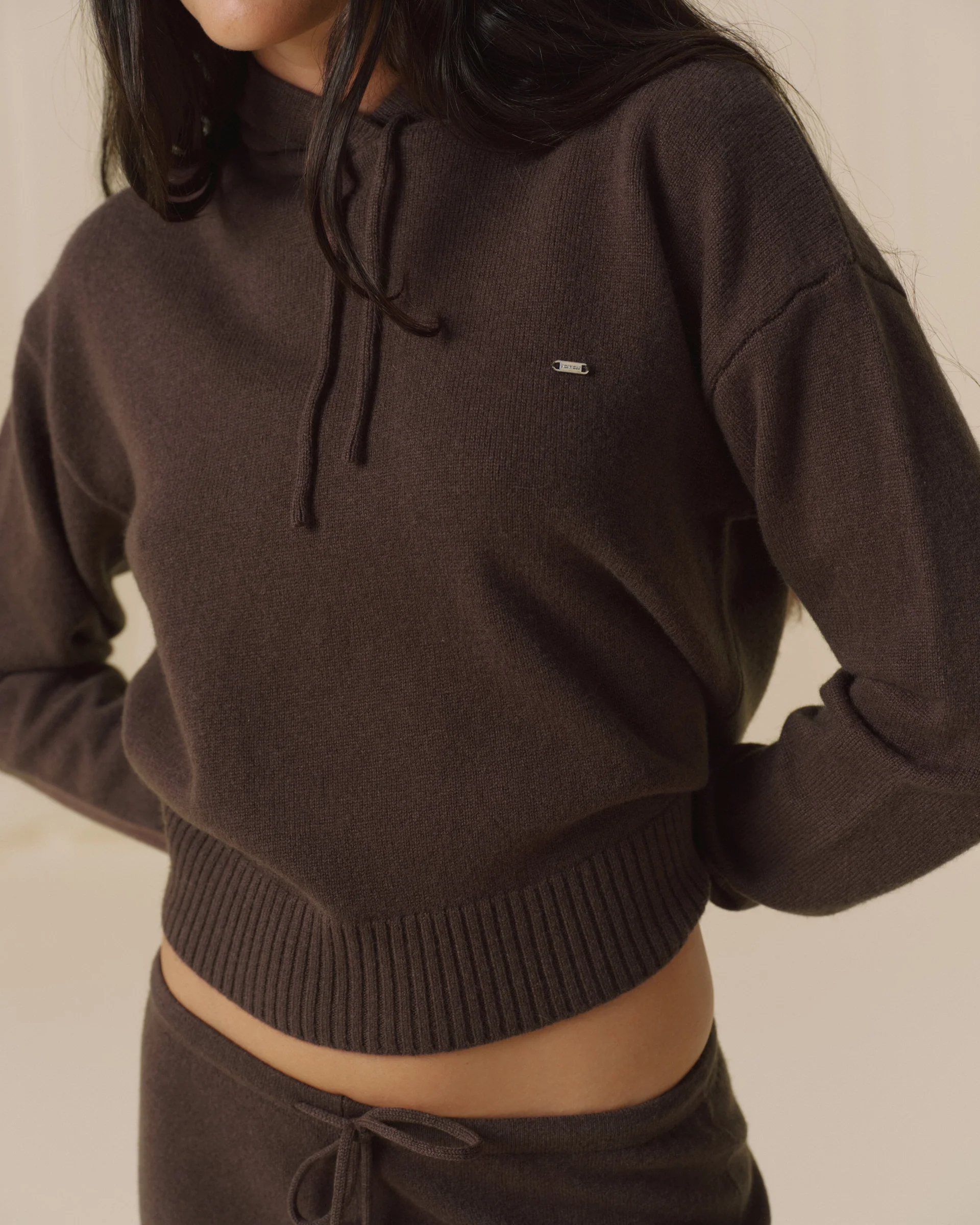 Lightweight Merino Wool Knit Hoodie - Coffee Bean
