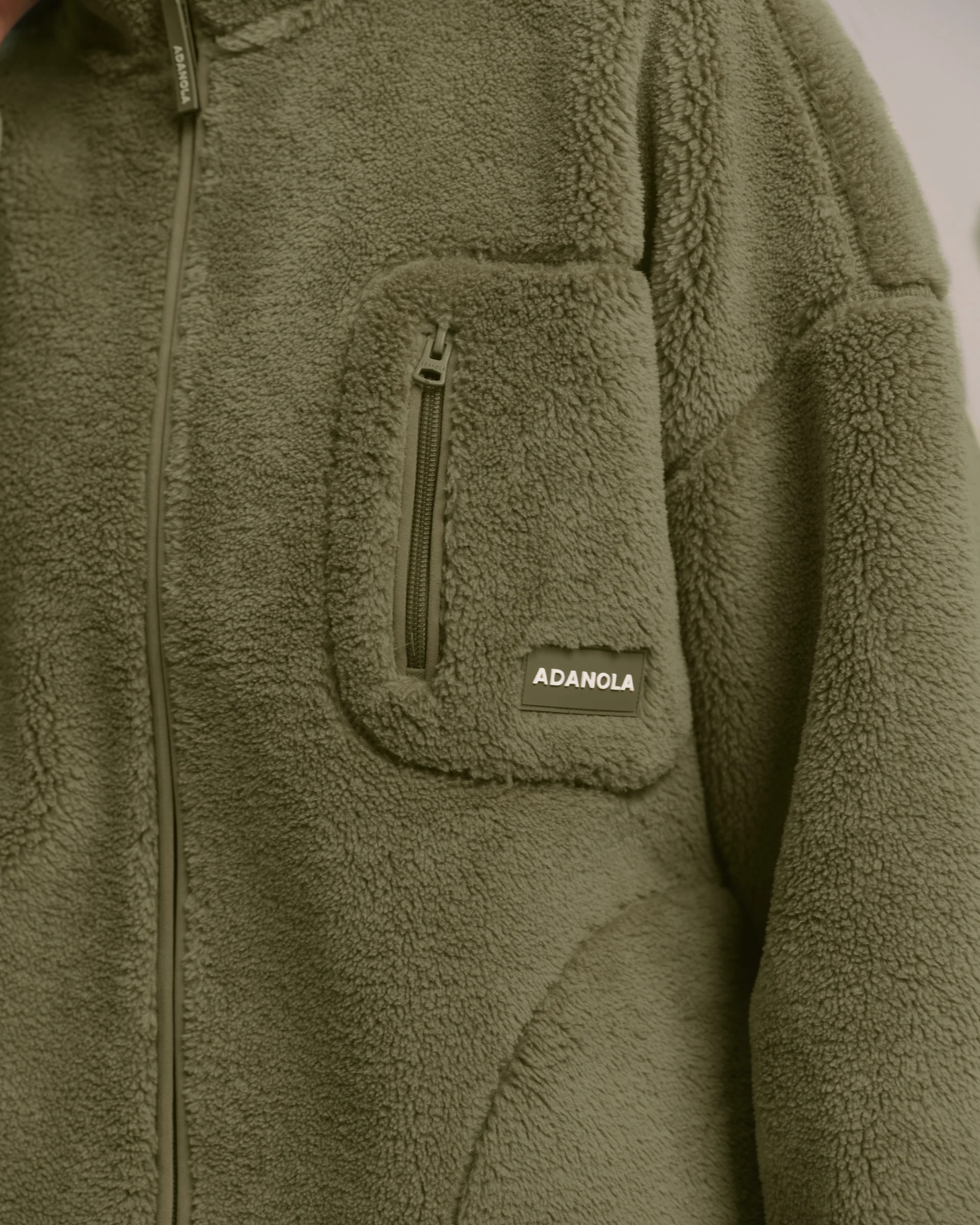 Oversized Pocket Zip Through Fleece - Dark Pistachio Green